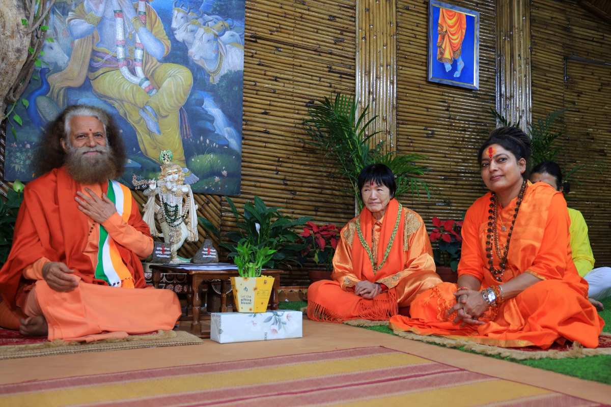 Yogmata Keiko Aikawa Ji, M.M. Shraddha Mata Ji, M.M. Chetna Mata Ji, and representatives from Pilot Baba Ashram #PilotBaba Ashram arrived at Parmarth Niketan