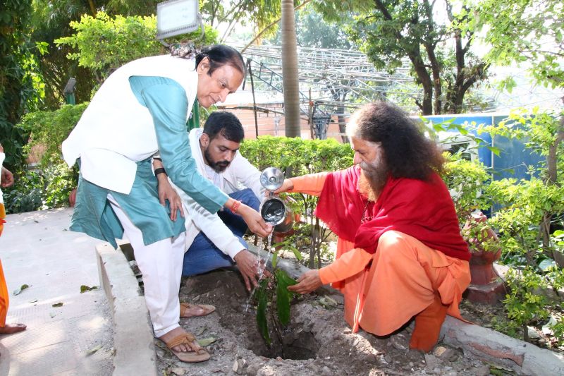 स्वामी चिदानन्द सरस्वती जी और श्री दिनेश शाहरा जी ने महाशिवरात्रि के पावन अवसर पर रूद्राक्ष के पौधों का रोपण कर पर्यावरण संरक्षण का संदेश दिया।