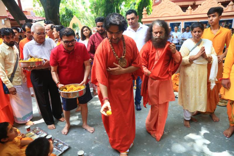 Saints Bhandara at Parmarth Niketan July 25, 2024 Pujya Swamiji and Shri Dhirendra Krishna Shastriji served food with great love to the saints, mahants and srishikumars in the premises of Parmarth Niketan today. Share:
