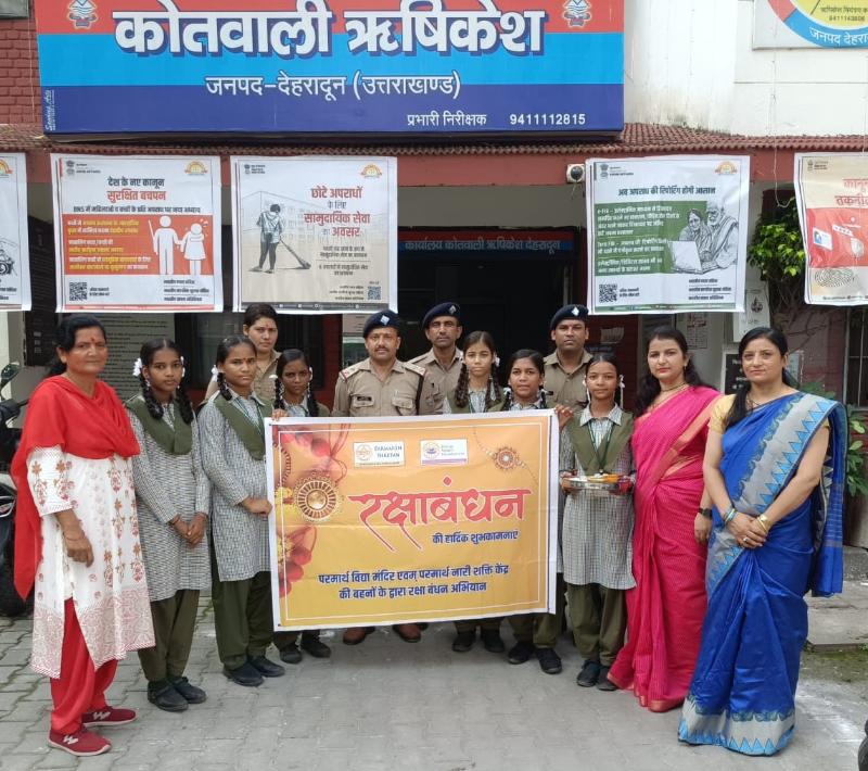 परमार्थ विद्या मन्दिर की छात्राओं और शिक्षिकाओं ने इस वर्ष रक्षाबंधन को एक अनोखे और प्रेरणादायक तरीके से मनाया। इस तीन दिवसीय रक्षाबंधन अभियान की शुरूआत कोतवाली, ऋषिकेश से की। उन्होंने कोतवाली, ऋषिकेश और नगरनिगम में जाकर पुलिसकर्मियों और नगर निगम के अधिकारियों एवं कर्मचारियों को राखी बांधी और उनके प्रति सम्मान और कृतज्ञता व्यक्त की। इसके साथ ही, उन्होंने रक्षाबंधन की याद में पौधारोपण कर पर्यावरण संरक्षण का संदेश भी दिया।
