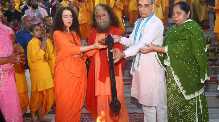 Famous storyteller Jaya Kishori ji inaugurated the three-day "Nani Bai Ko Myro Katha" organized by the Agrawal family at Parmarth Niketan on the banks of the Ganga, in the presence…