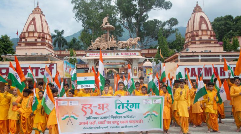 As India prepares to celebrate her 78th Independence Day tomorrow, the Har Ghar Tiranga Abhiyan was in full-force at Parmarth Niketan as the Rishikumars of Parmarth's Gurukul staged a patriotic…