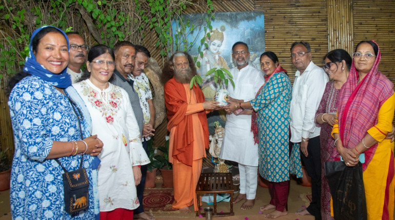 Renowned storyteller Acharya Sri Pundrik Goswami Ji visited Parmarth Niketan and expressed his happiness after meeting Pujya Swamiji. He remarked about the confluence of the Ganga and Yamuna rivers, symbolizing…