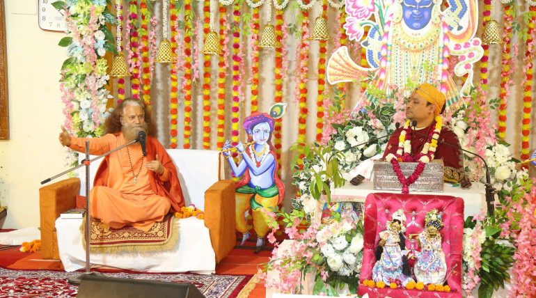 In the divine ambiance of Parmarth Niketan, renowned storyteller Govats Shri Radhakrishnaji Maharaji's enlightening everyone with the divine message of Shrimad Bhagwat Katha.