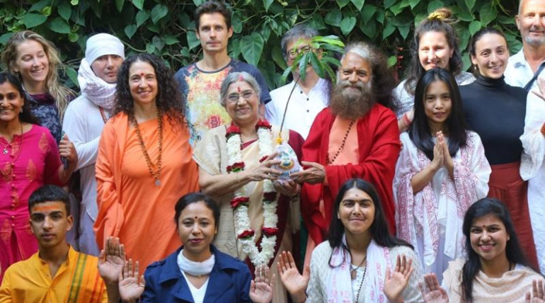 परमार्थ निकेतन में द योगा इंस्टीट्यूट की निदेशक डॉ हंसा योगेन्द्र जी पधारी। परमार्थ गुरूकुल के ऋषिकुमारों ने वेदमंत्रों और शंखध्वनि से उनका दिव्य स्वागत किया।
