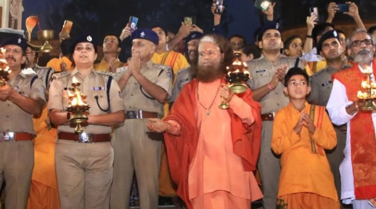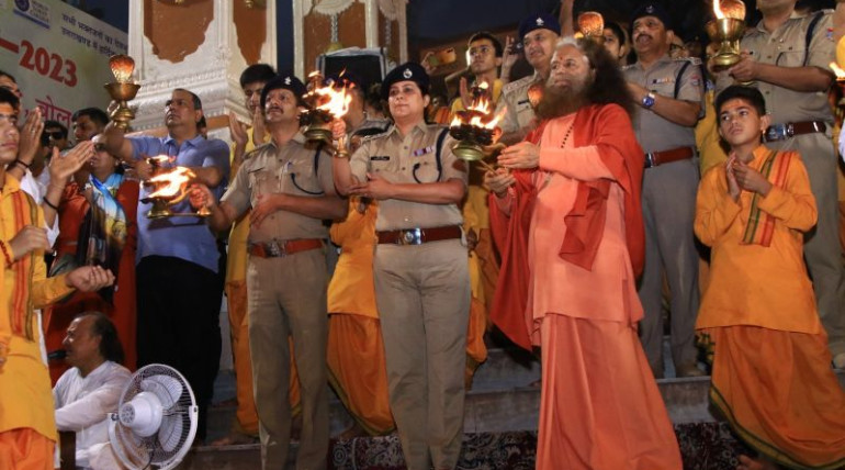 Pujya Swamiji appreciated all the police officers who served for the Kanwad Yatra pilgrims during Parmarth Niketan 's world famous Ganga Aarti. Pujya Swamiji praised their hardwork and support which…
