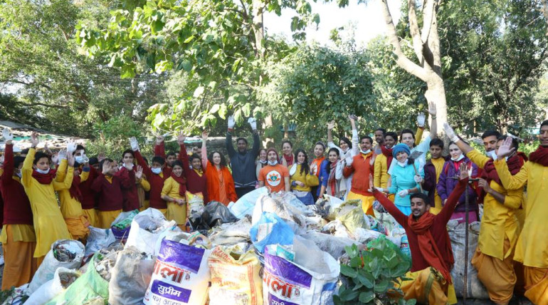 A special morning clean up took place in Rishikesh as Parmarth Rishikumars joined volunteers from around the world and volunteers of Parmarth Niketan to clean up the Rishikesh Swargashram Region.
