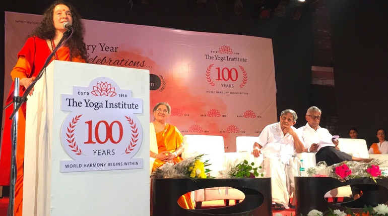 Sadhvi Bhagawati Saraswati gave a beautiful keynote address at the International Yoga Seminar, during the second day of the two day inaugural celebration of The Yoga Institute’s 100th anniversary, at…