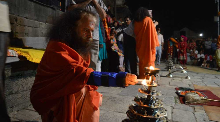 Pujya Swami Chidanand Saraswatiji - Muniji and Sadhvi Bhagawati Saraswati graced and blessed the Pashupatinath Aarti during their trip to Nepal recently.