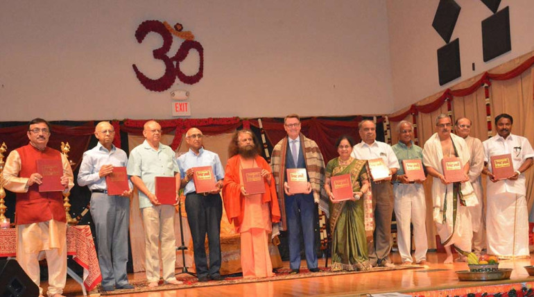 Pujya Swamiji presented priests and leaders of the Hindu Community in Kentucky with a set of the Encyclopedia of Hinduism for their temple and community centre.