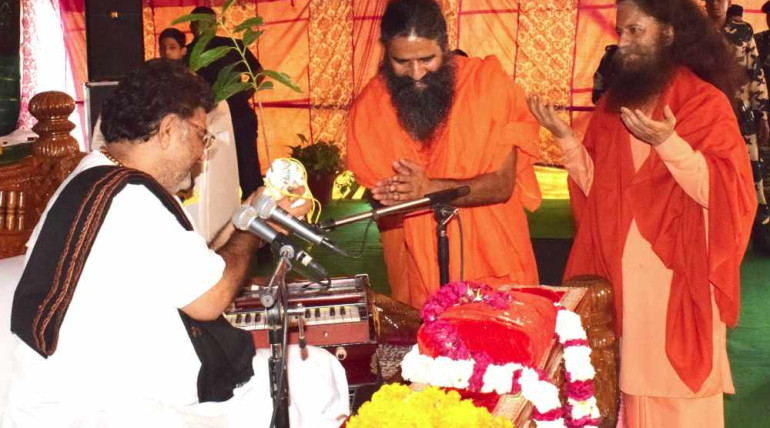 Yog Guru Baba Ramdev ji arrived home at Parmarth Niketan yesterday and was warmly welcomed by Pujya Swamiji & Sadhvi Bhagawatji.