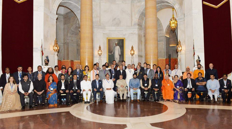 Pujya Swami Chidanand SaraswatiJi graced an event at the Rashtrapati Bhavan last night in which Brand Ambassadors of Swachh Bharat Mission called on the President of India, Shri Pranab Mukherjee.