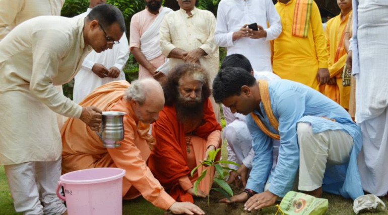 Ganga Action Parivar-Parmarth Niketan started this year's monsoon tree plantation by planting 124 saplings with the students of Darshan Mahavidyalaya Muni Ki Reti School in Rishikesh. Volunteers from Parmarth Niketan,…