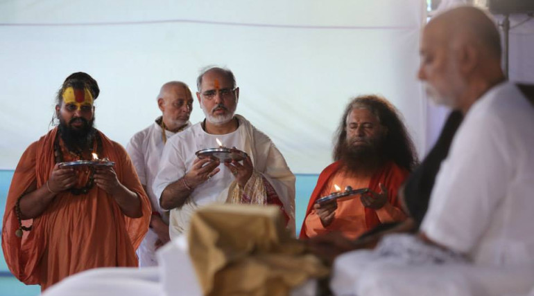 During Pujya Swamiji and Sadhviji's recent yatra to Rudraprayag, devotees gathered together in prayer, divine chanting and meditation.