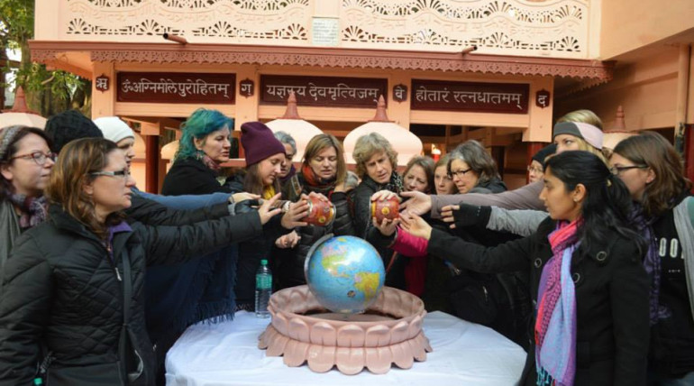 A beautiful group of twenty graduate students studying Holistic #Health in Minnesota, America at the St. Catherine University were deeply touched and inspired upon visiting their Himalayan home at #ParmarthNiketan…