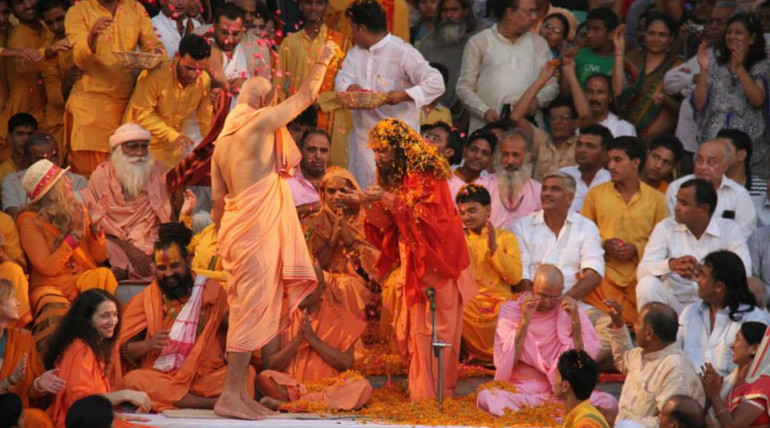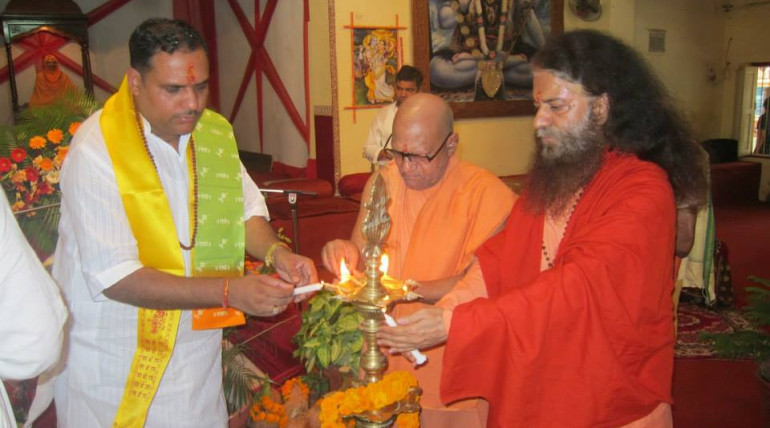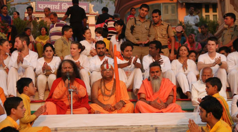 Pujya Swami Hansdev Acharya and Pujya Swami Dharmdev Maharaj joined Pujya Swamiji for Ganga Aarti today. They both passionately and ardently showed their support for Pujya Swamiji Clean and Green…