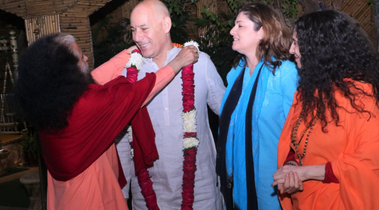 Pujya Swamiji and Sadhviji extend warm welcome to Dr Ron Malka, discuss world peace, environment and ongoing service programs