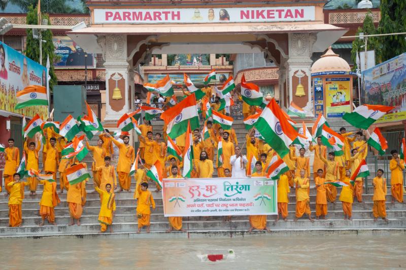इस अवसर पर परमार्थ निकेतन के अध्यक्ष स्वामी चिदानन्द सरस्वती जी ने ’हर घर तिरंगा-हर घर पेड़’ हेतु प्रेेरित किया। स्वामी जी ने कहा कि ‘हर घर तिरंगा’ अभियान भारत सरकार की अद्भुत पहल है। राष्ट्रध्वज तिरंगा हमारी जान व शान है। तिरंगे का केसरी रंग ‘ताकत और साहस का प्रतीक है, सफेद रंग ‘शांति और सच्चाई’ का संदेश देता है एवं हरा रंग ‘भूमि की उर्वरता, समृद्धि और शुभता’ का प्रतिनिधित्व करता है। भारतीय राष्ट्रीय ध्वज केवल एक प्रतीक नहीं है, बल्कि हमारे सामूहिक गौरव और एकता को भी दर्शाता है।