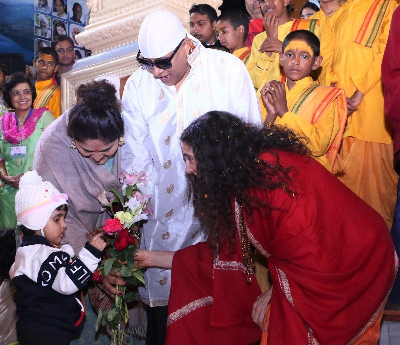 Sivamani and Runa departed early this morning, with Pujya Sadhviji taking the time to bid farewell and to personally thank them for, once again, making the Festival such a memorable experience for everyone. Pujya Sadhviji also blessed the couple’s beautiful baby girl, Milana, to whom she presented a sacred Rudraksha mala and some flowers.