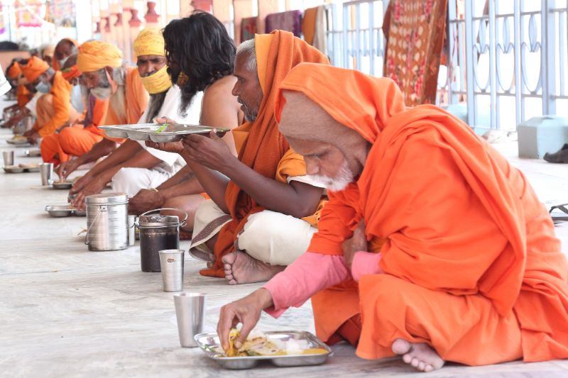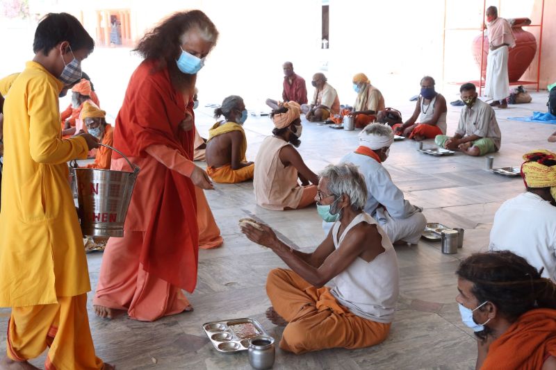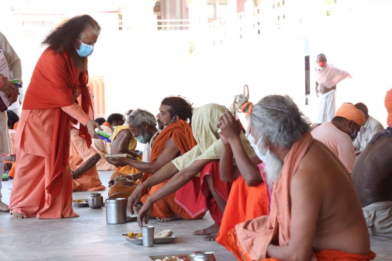 Tomorrow is World Hunger Day and, on its Eve, Pujya Swami Chidanand Saraswatiji took a moment while serving at the daily Ganga Ghat Bhojan Vitra to express His deeply-felt concerns about the food conditions for Indian families – especially during Covid’s long-lasting second wave.