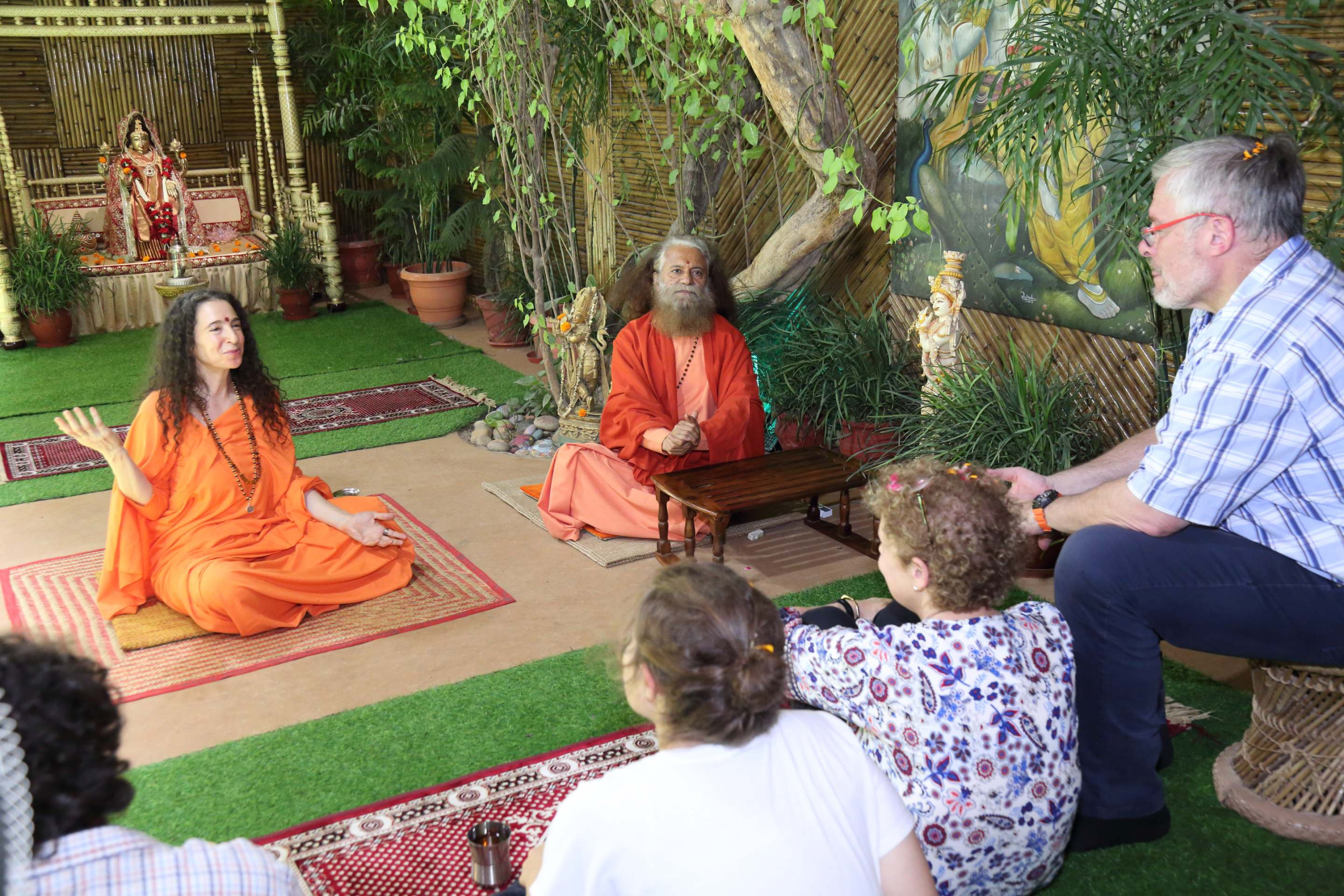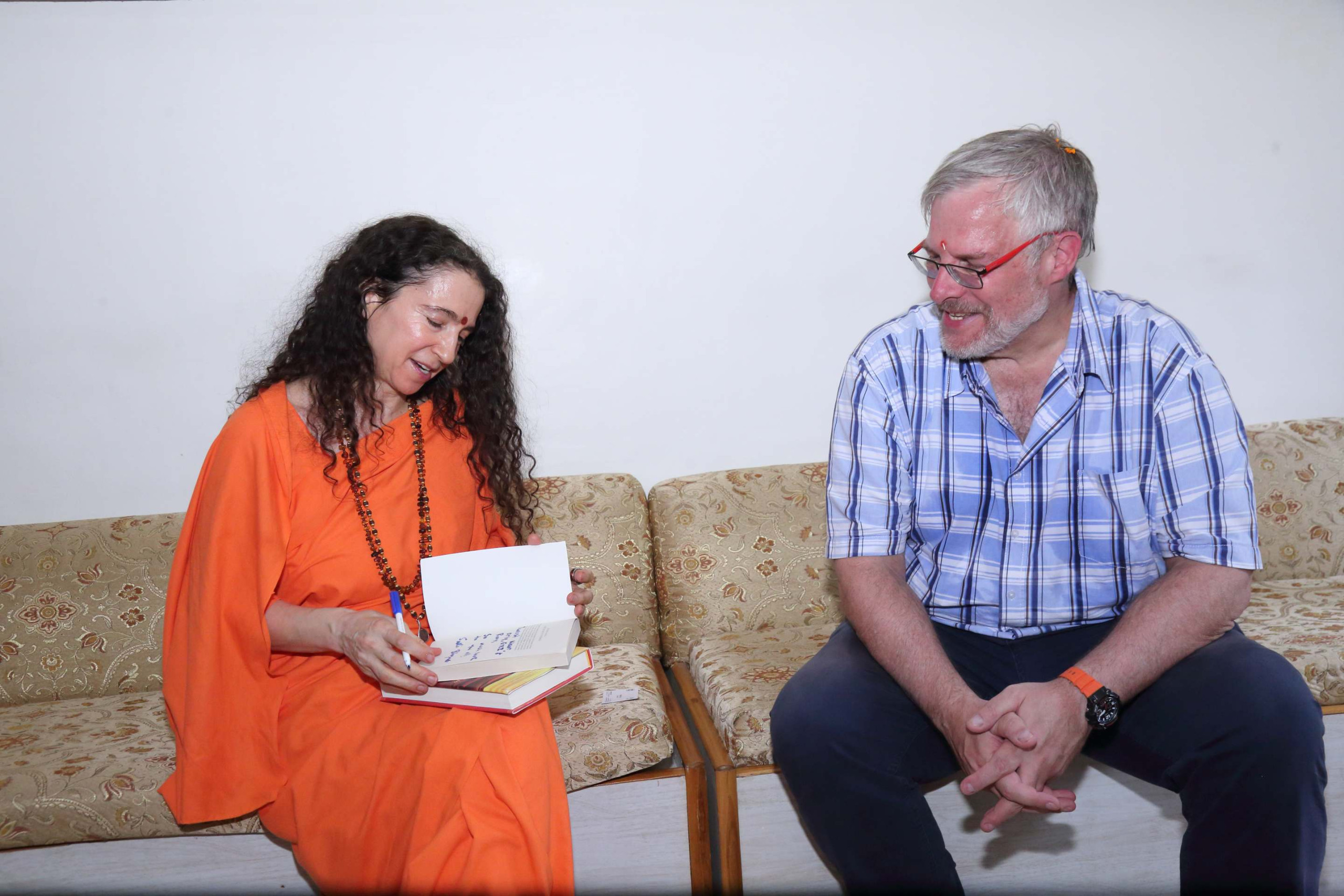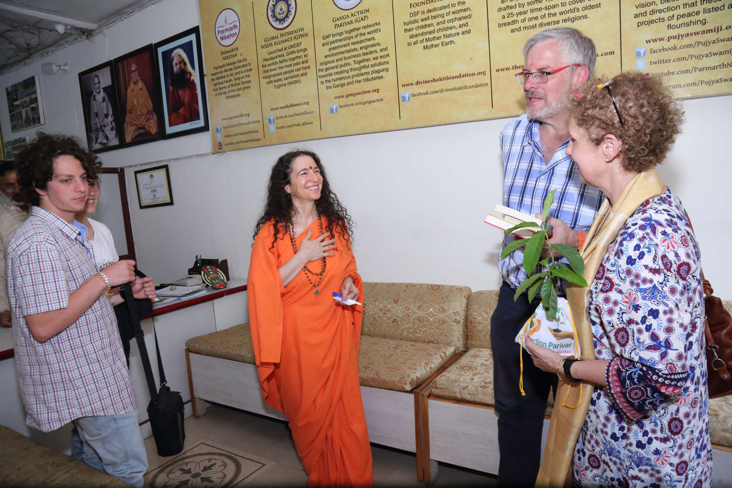 During the meeting, Pujya Swamiji, Ambassador Gillon and Pujya Sadhviji discussed the challenges of a growing dependence on fossil fuels at a time of increasing climate change, as well as the increasing need for alternative sources of energy, such as water, wind and sun, and the necessity of ending the proliferation of single-use plastics.