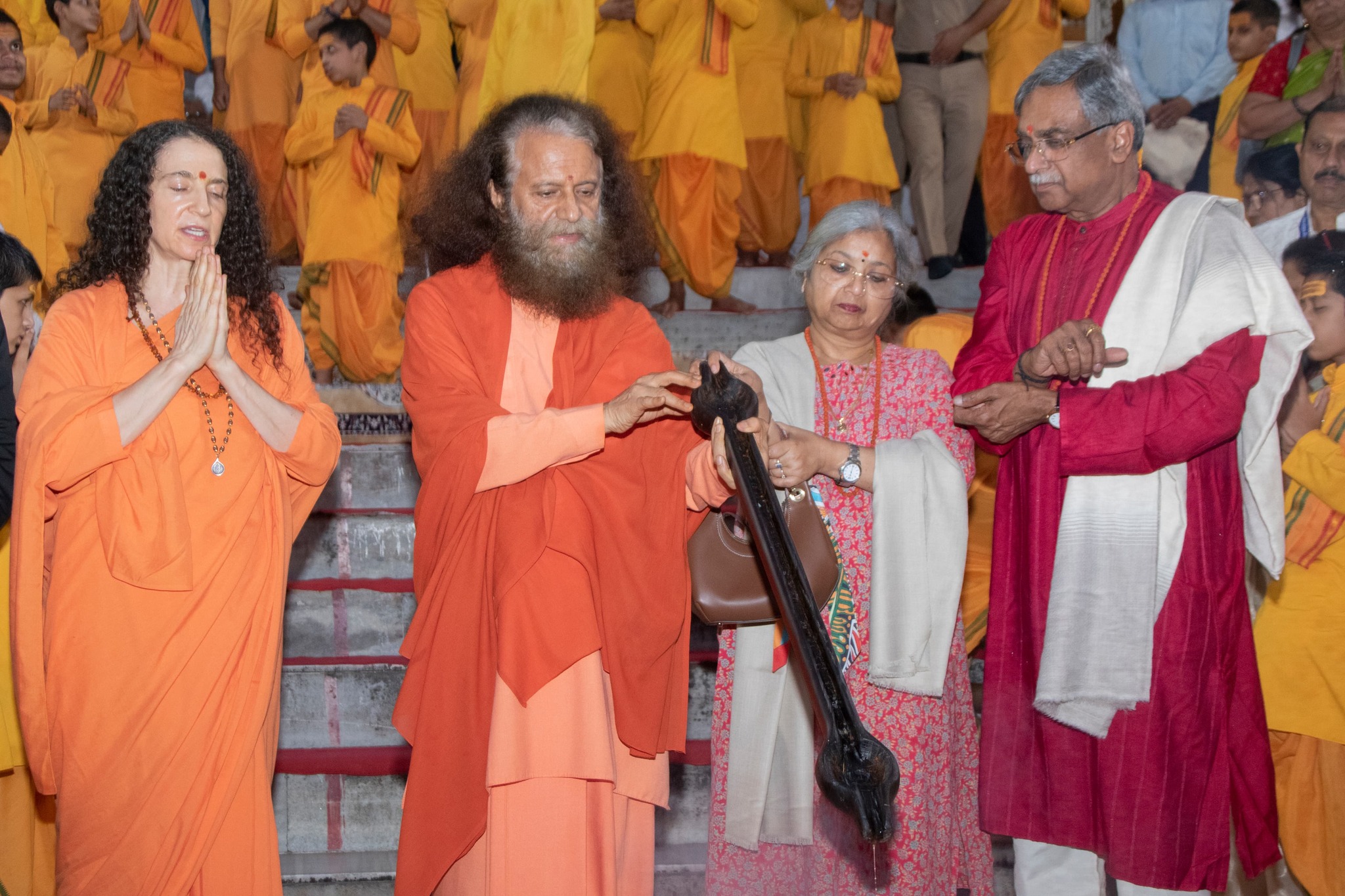 Hon’ble Justice Vikram Nath of the Supreme Court of India and his wife, Vice Chancellor of Allahabad University, Smt. Sangeeta Nath Ji, visited Parmarth Niketan, where they met with HH Param Pujya Swami Chidanand Saraswatiji and Pujya Sadhvi Bhagawati Saraswati Ji. They participated in the divine Ganga Aarti, experiencing the spiritual atmosphere of Parmarth Niketan.