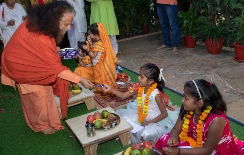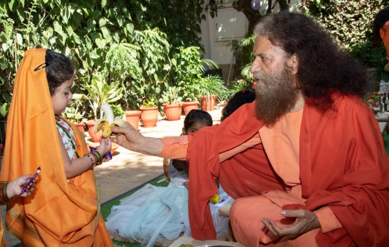 On the conclusion of Navratri and the auspicious occasion of Dussehra, HH Pujya Swamiji, Pujya Sadhviji, and our Parmarth Niketan family held a beautiful Kanya Puja for all the young girls, serving them food (prasad) and gifts honoring them as embodiments of the Mother Goddess. Let us all celebrate the victory of good over evil and the strength of feminine power, the inner Shakti.