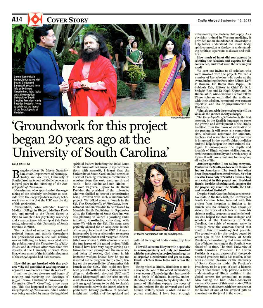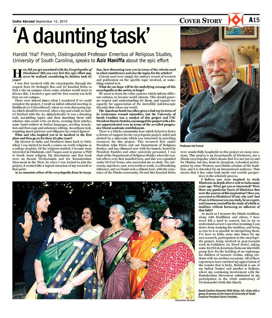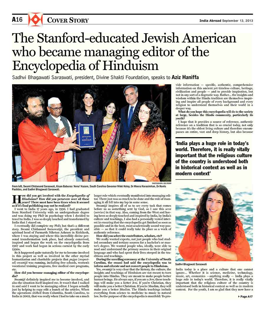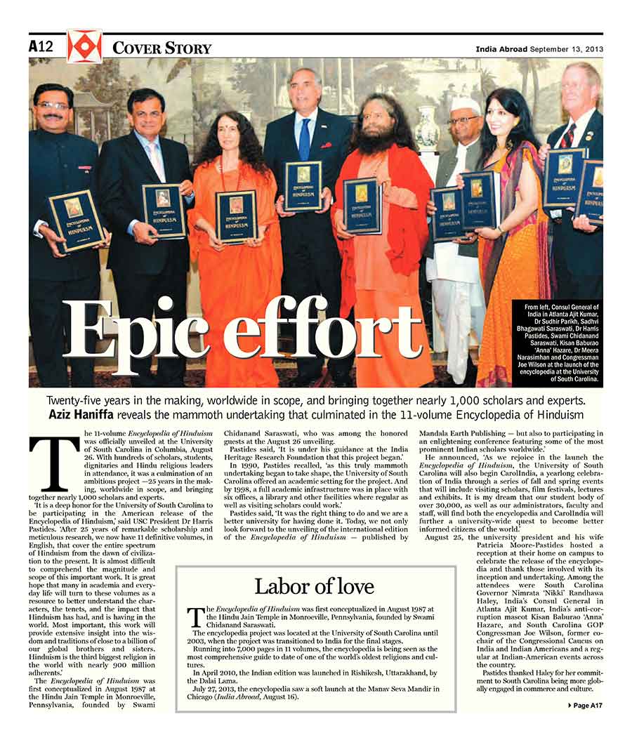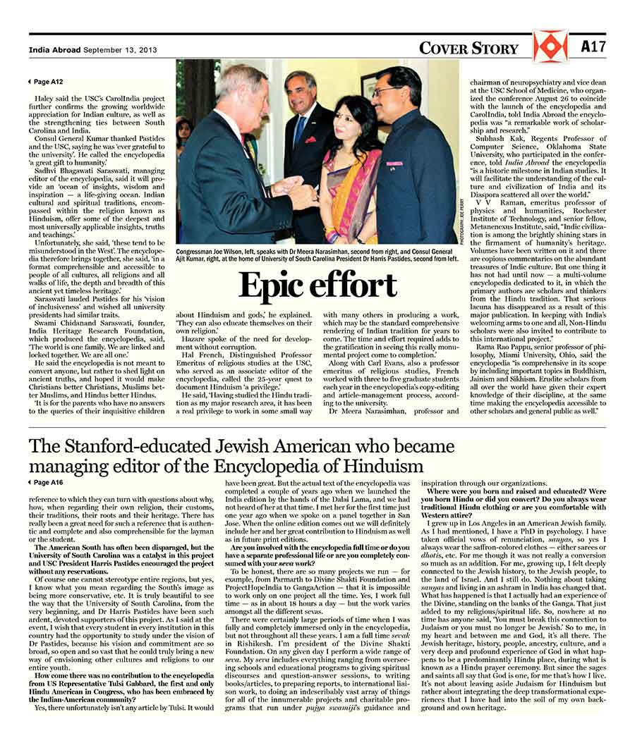 “Making of the Encyclopedia of Hinduism: An Epic Effort”, India Abroad