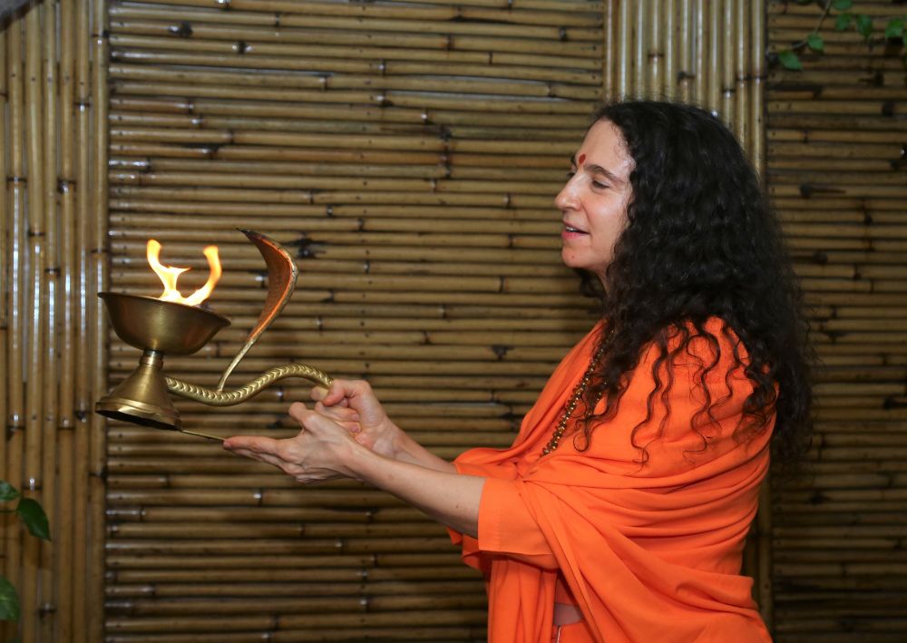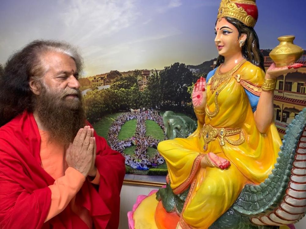 In celebration of Mothers all over the world, Param Pujya Swamiji carried out a beautiful Ganga Aarti in his Jyopri (garden) for Maa Durga and gave a Divine Satsang for our online community with Sadhvi Bhagawati Saraswatiji. Pujya Swamiji so perfectly reminded us, “When I say “Mother,” I mean many things. Of course I mean the actual Mother who gave birth to you. I also mean your Mother land, and your Mother tongue. Most importantly, I also mean the Divine Mother of all — the Goddess. In this Mother, we find that there are not only our own Mothers, but there are Mothers everywhere. We find Mother Nature, Mother Earth, Mother Ganga. In the arms of the Mother, you feel that everything is right. It’s like being in the womb, in the arms of the mother. You know nothing can go wrong. It’s the same feeling that a child has sitting in his Mother’s lap. Nothing can go wrong.”