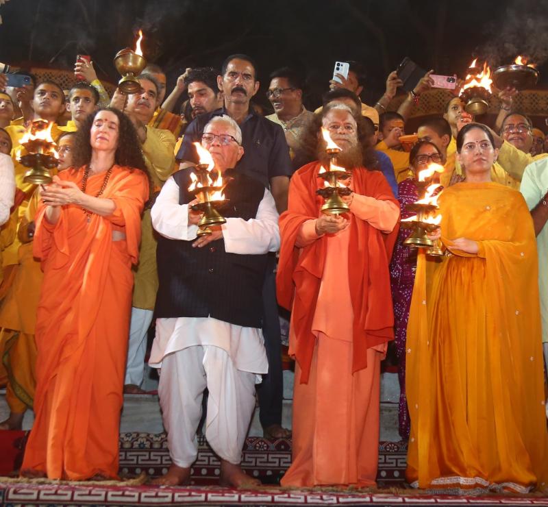 Former Governor of Rajasthan Shri Kalraj Mishraji visited Parmarth Niketan and participated in the divine Ganga Aarti alongside HH Param Pujya Swami Chidanand Saraswatiji, Pujya Sadhvi Bhagawati Saraswatiji, and Jaya