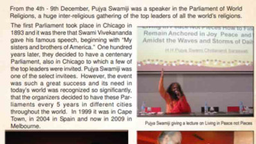 Pujya Swamiji’s Travels in Trinidad & USA Millennium World Peace Summit of Religious & Spiritual Leaders Dharma Yatra
