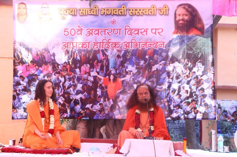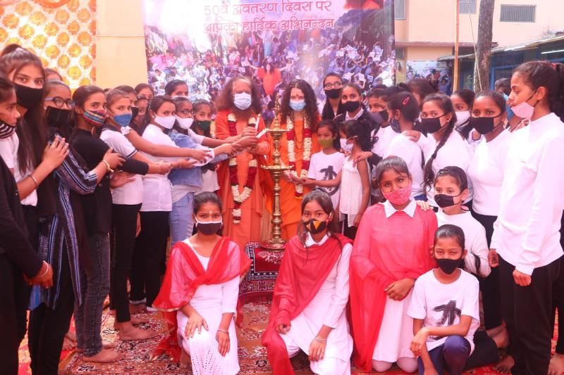 Dear to Pujya Sadhvi Bhagawati Saraswatiji’s heart is empowerment of women and girls and the creation of a world in which they can not only survive but truly thrive. It was therefore on the occasion of her 50th Birthday that the official inauguration of the Parmath Nari Shakti Kendra with its additional class offerings took place, as administrators, teachers and students at Divine Shakti Foundation’s Parmarth Vidya Mandir Prakash Bharti school came together to make the event very special.