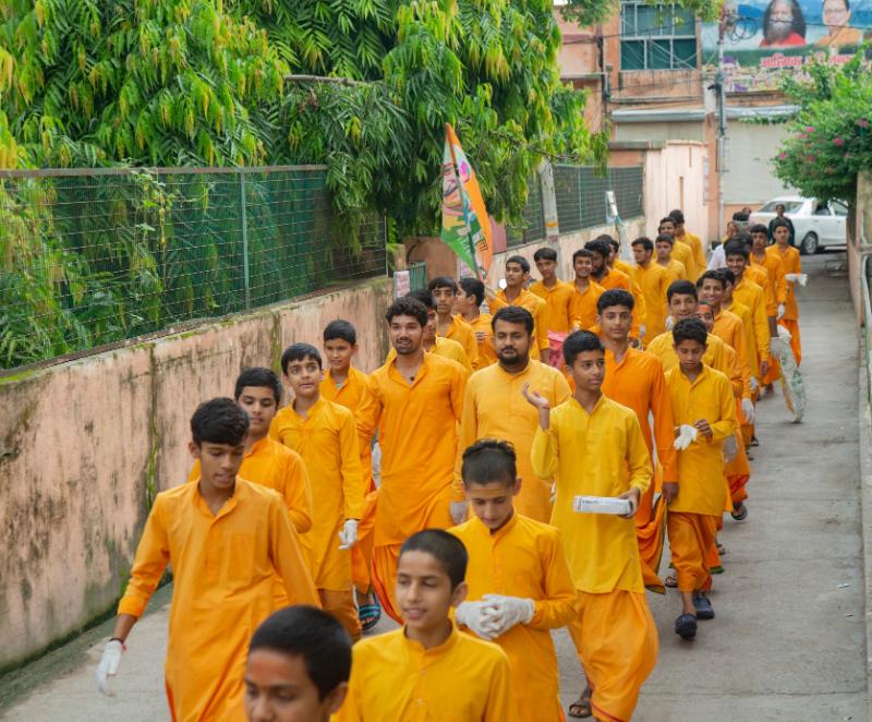 As the 2024 Kanwad Mela draws to a beautiful and successful conclusion, the Rishikumars, Acharyas and sevaks of Parmarth Niketan today launched a cleanliness drive to collect the waste products left behind in Neelkanth Marg, and held a rally to create awareness about environmental protection. During this, plastic bottles, single-use plastic bags and other materials were collected and disposed of.
