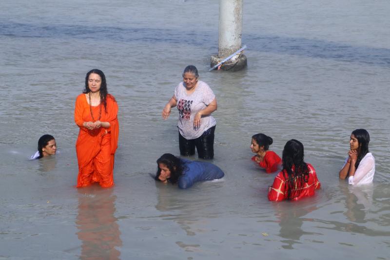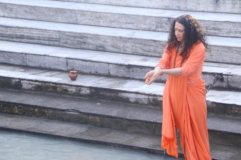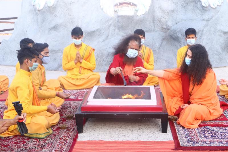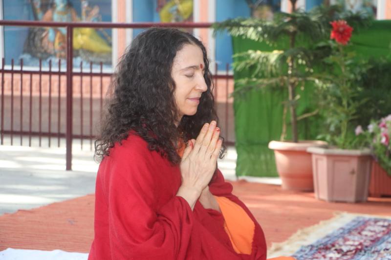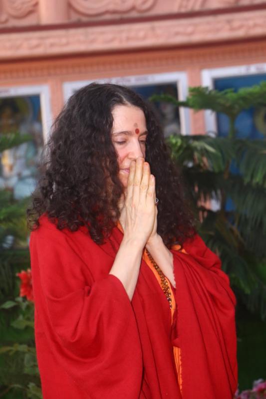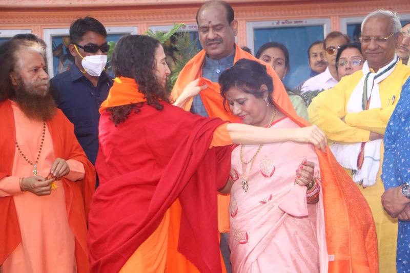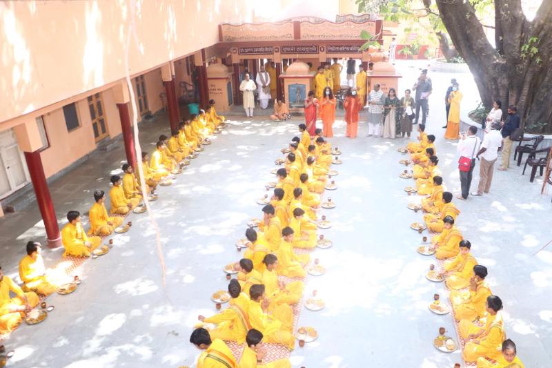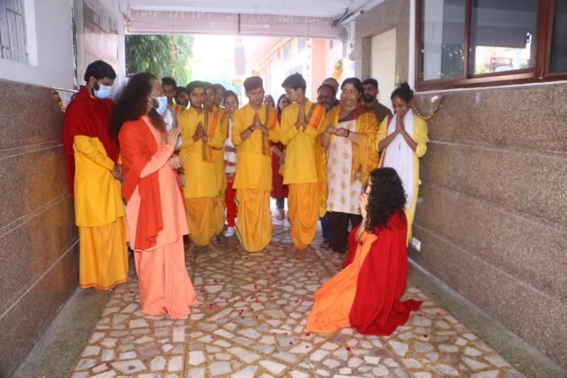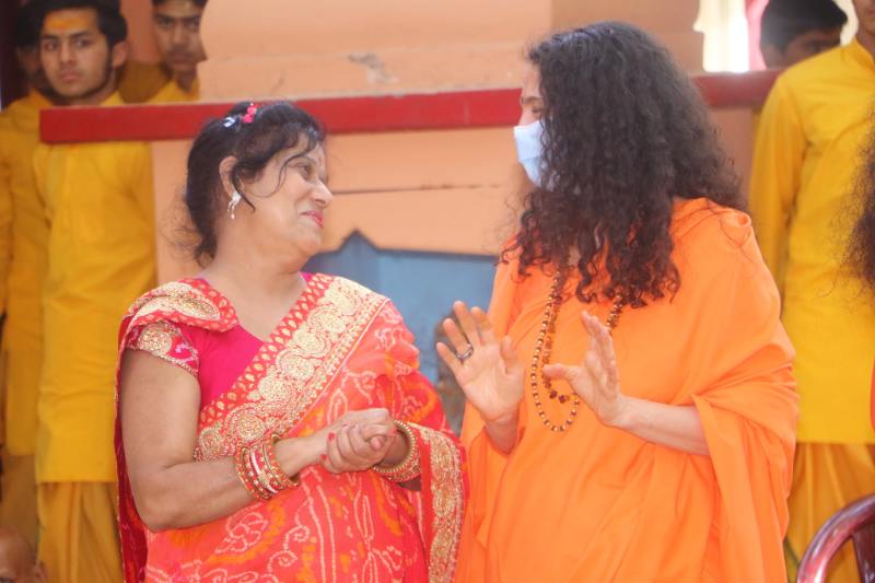 This year her birthday beautifully coincided with Mahashivratri (11th March), the Haridwar Kumbh Mela, the conclusion of our first ever online International Yoga Festival and the Hon’ble Speaker of the Lok Sabha Shri Om Birlaji and his families visit to Parmarth from the 13-14th March. On Shivratri she took part in a beautiful Shiva Abhishek and in the evening more sacred prayers and Rudrabhishek took place. The next morning a beautiful yagna on the iconic Shankar Bhagawan Ghat with her Guru Pujya Swami Chidanand Saraswatiji – Muniji and Parmarth family. Thereafter she took a joy filled Ganga Snan with devotees and sevaks bathing in the sacred waters of Maa Ganga.