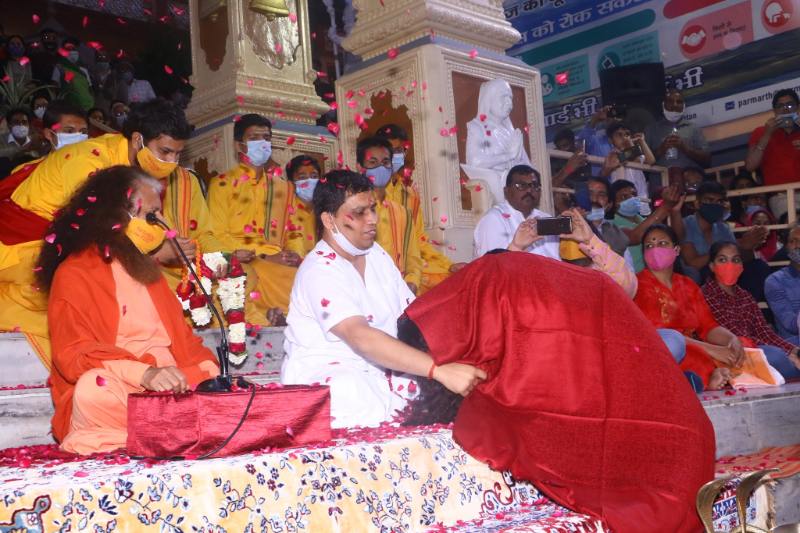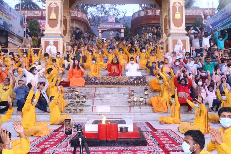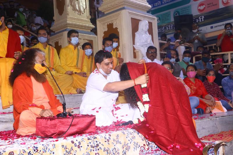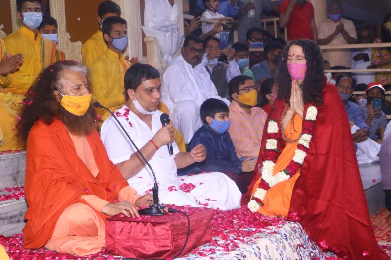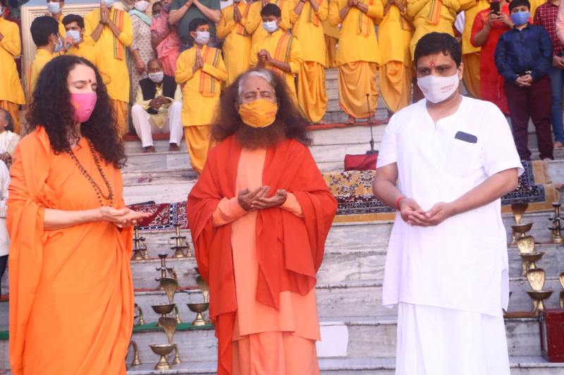 She then was blessed by the presence of Pujya Acharya Bal Krishanji who lovingly graced the occasion to wish her in the sacred Ganga Aarti and then the evening concluded with a beautiful LIVE online interaction with world famous precussionist Sivamaniji and his beautiful wife, the soulful singer Runa Rizvi, her father Rajkumarji and others.