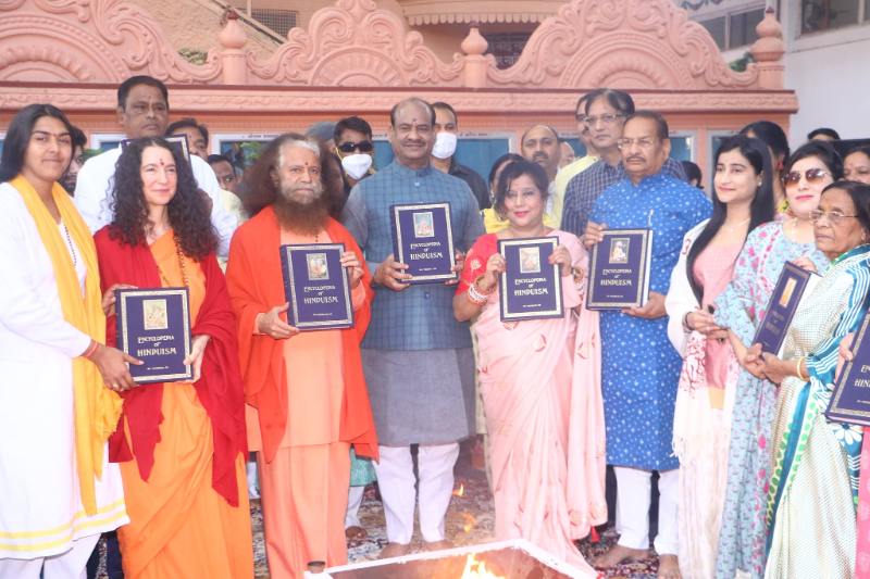 On her birthday a sacred Sunday yagna in the sacred and oldest grooves of the ashram transpired into a moment of mantras, meditation and deep bliss concluding with the Hon’ble Speakers family offering their final ahuti with Pujya Swamiji and Pujya Sadhviji. The Encyclopedia of Hinduism of which she is the Managing Editor and “Come Home to Yourself” was presented to them to take back with them.