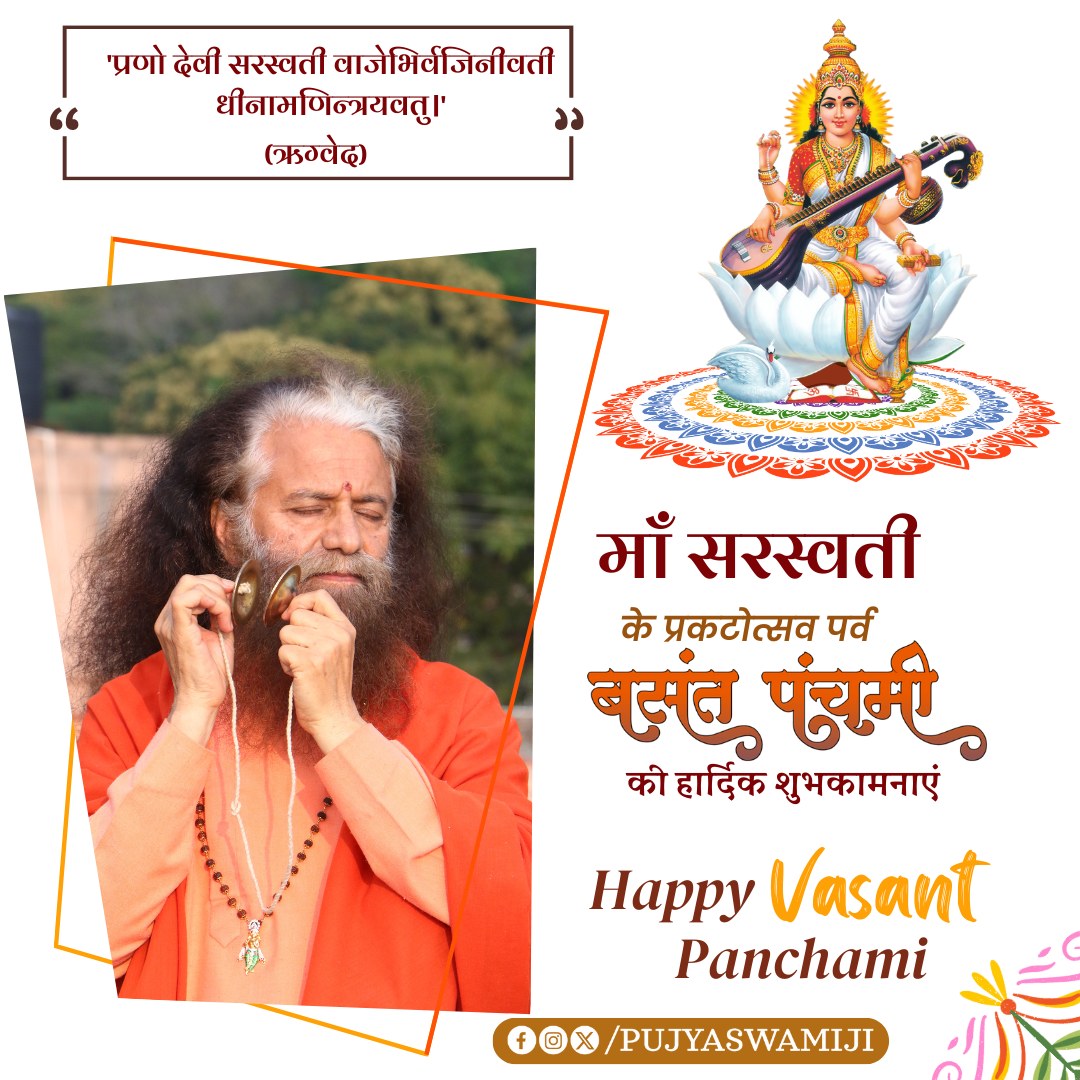 ‘प्रणो देवी सरस्वती वाजेभिर्वजिनीवती धीनामणिन्त्रयवतु।’ (ऋग्वेद) माँ सरस्वती के रूप में हमारी बुद्धि, प्रज्ञा तथा मनोवृत्तियों की संरक्षिका, विद्या और विनम्रता की देवी “सरस्वती” के प्रकटोत्सव पर्व “बसंत पंचमी” की