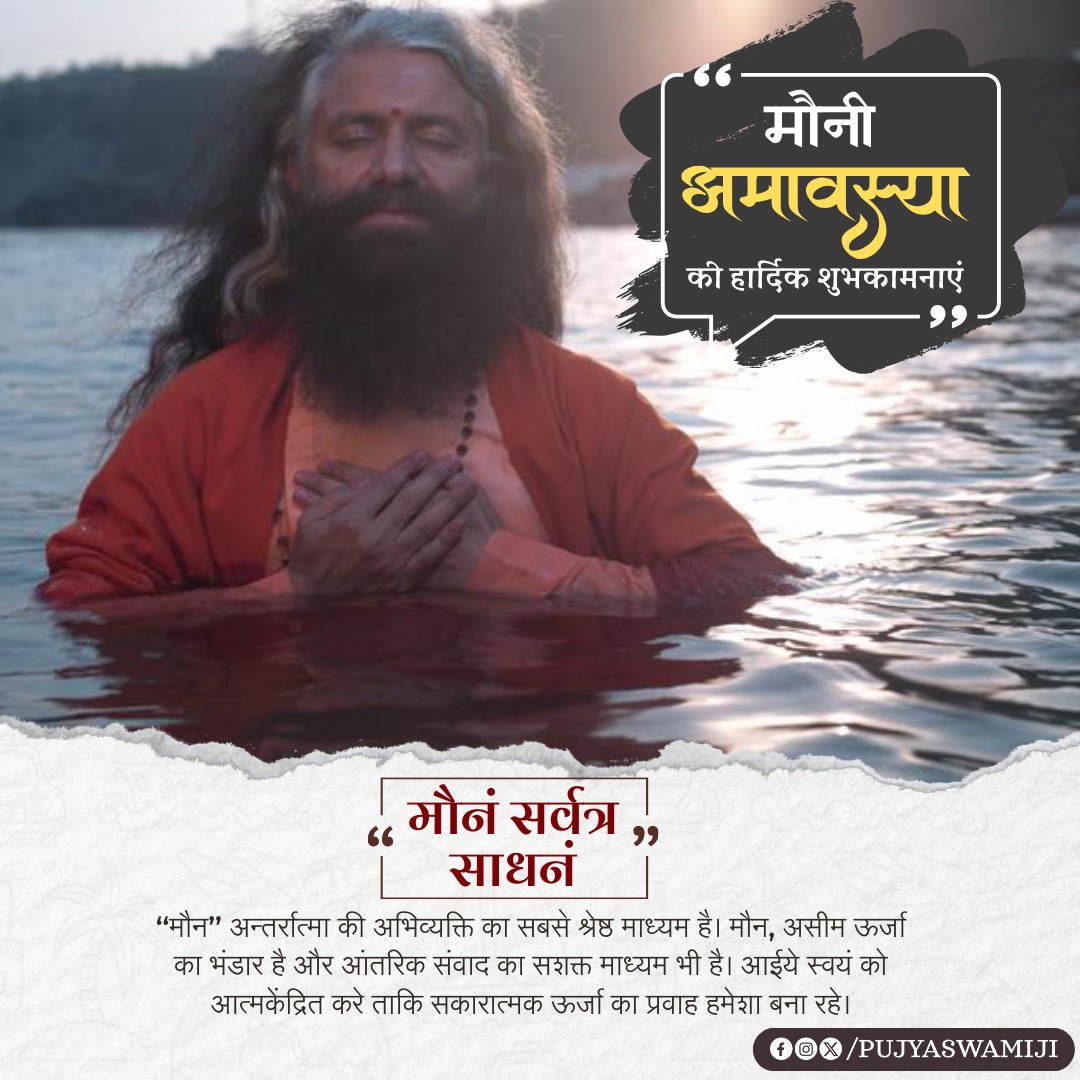 मौनं सर्वत्र साधनं ‘‘मौन’’ अन्तर्रात्मा की अभिव्यक्ति का सबसे श्रेष्ठ माध्यम है। मौन, असीम ऊर्जा का भंडार है और आंतरिक संवाद का सशक्त माध्यम भी है। मौनी अमावस्या अपने आराध्य