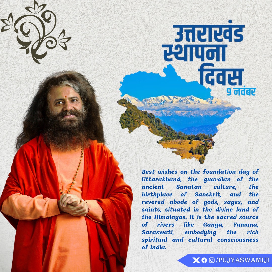 Best wishes on the foundation day of Uttarakhand, the guardian of the ancient Sanatan culture, the birthplace of Sanskrit, and the revered abode of gods, sages, and saints, situated in