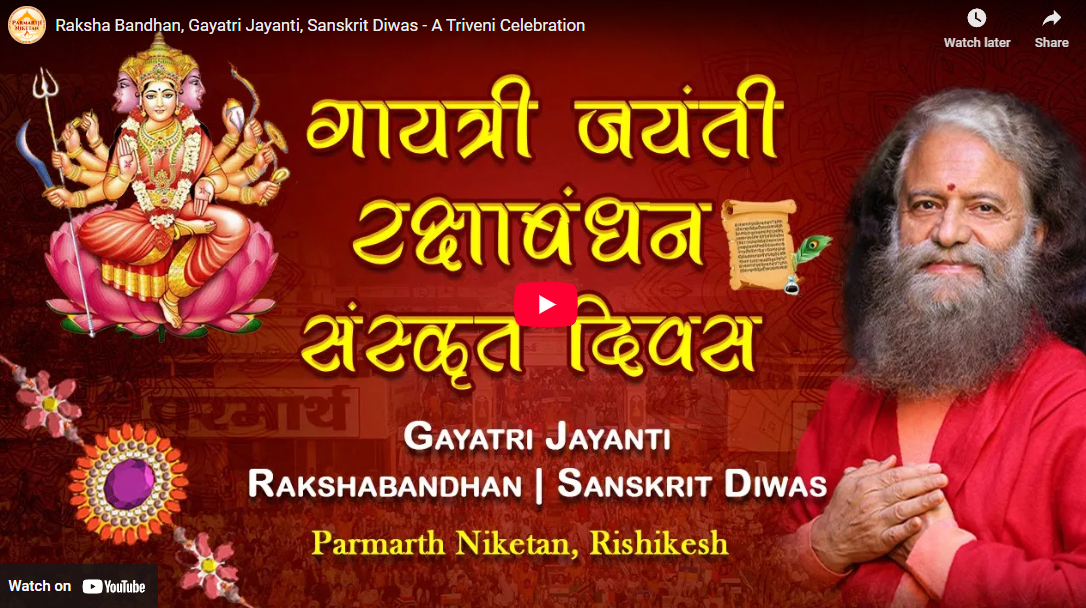 On this sacred confluence of Raksha Bandhan, Gayatri Jayanti, and Sanskrit Diwas, HH Pujya Swami Chidanand Saraswatiji sends blessings from the holy banks of Ma Ganga at Parmarth Niketan —