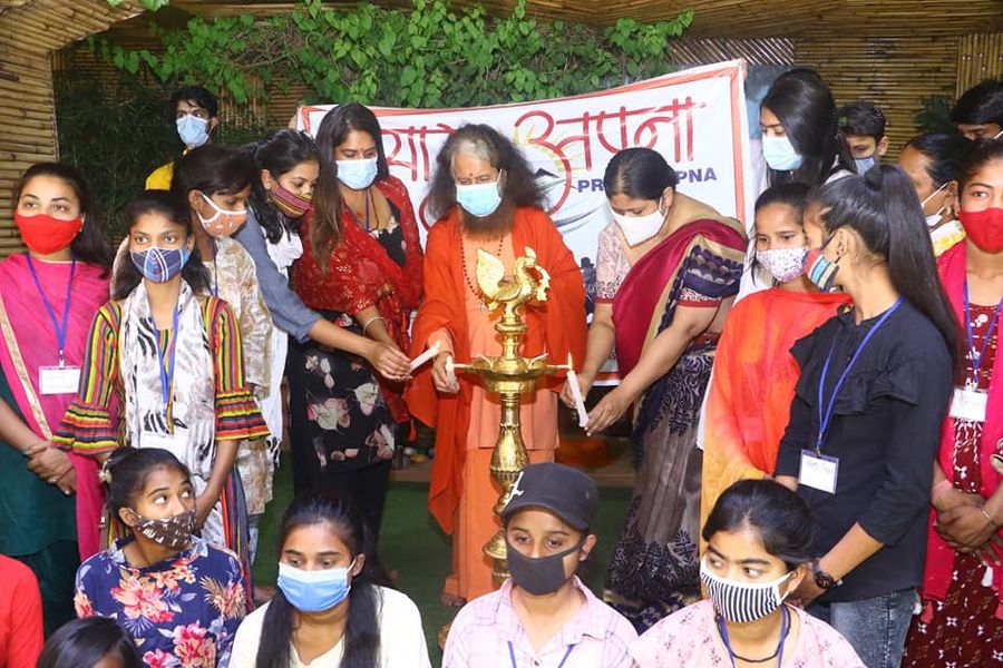 Pujya Swami Chidanand Saraswatiji, Co-founder and Chair of GIWA, began these young leaders’ training on a high note, with blessings, words of encouragement and sacred pujas – the traditional lamp-lighting and water blessing ceremonies – designed to awaken their minds and their hearts as they begin the process of enhancing their skills for the tasks ahead.